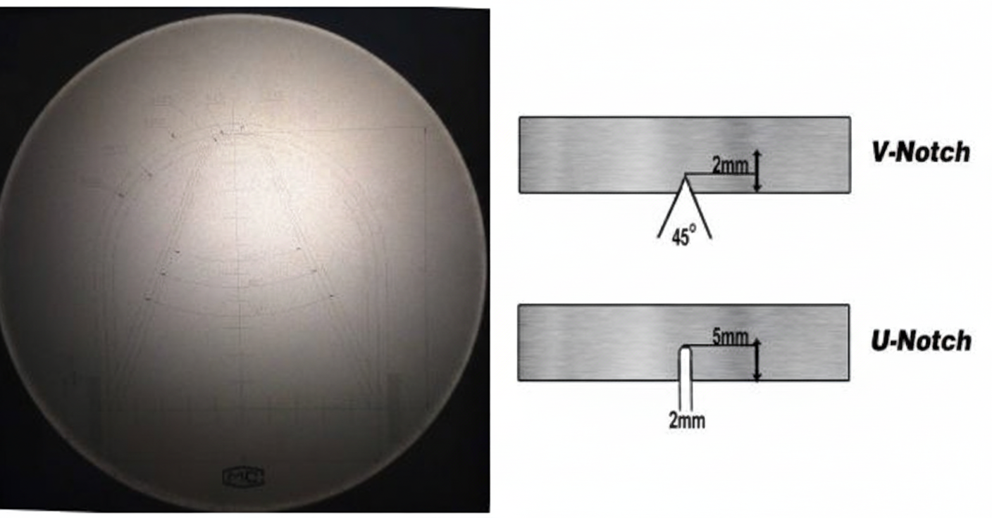 Charpy Specimen Notch Projector EI-CSP50: Precision Notch Verification